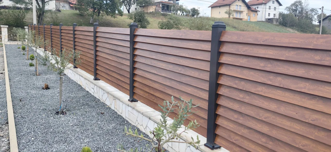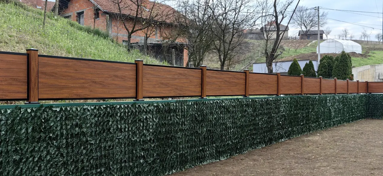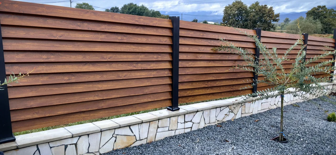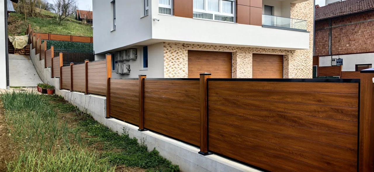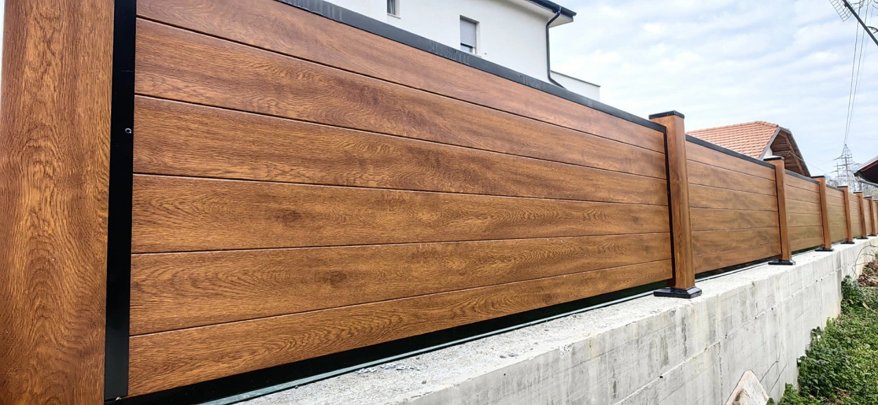 Unsere PVC-Zäune in edler dunkler oder goldener Eiche verleihen Ihrem Grundstück einen stilvollen Look – ganz ohne die aufwendige Pflege von echtem Holz.